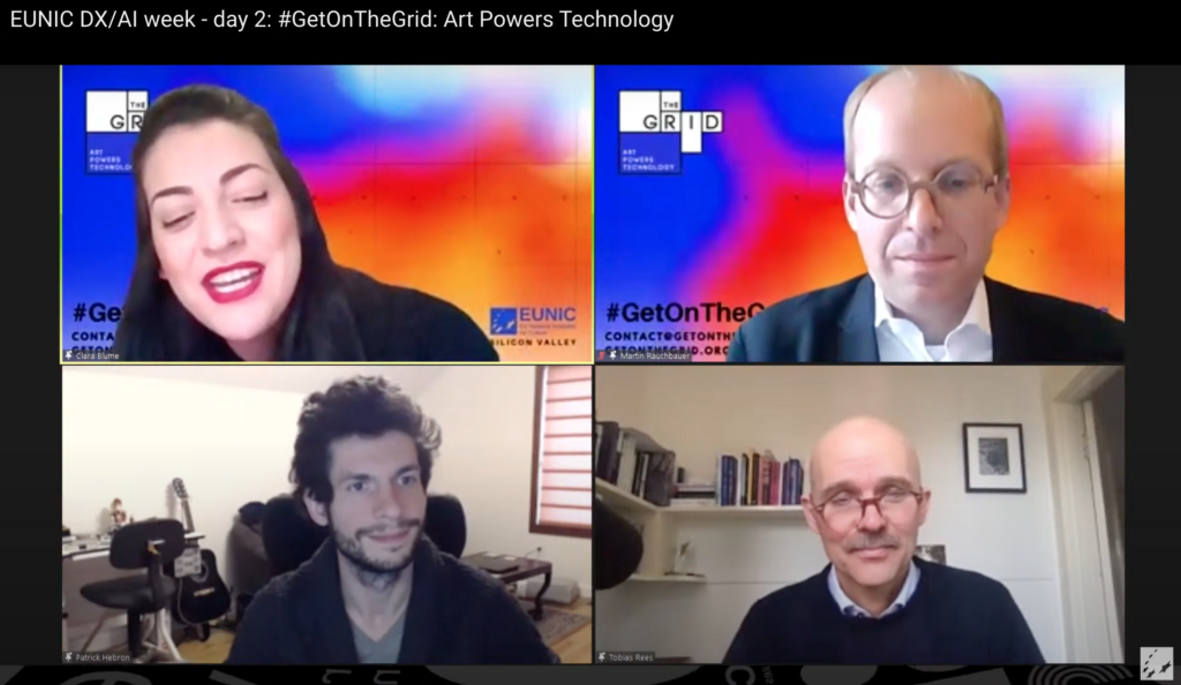 This same month, the EU National Institutes for Culture (EUNIC) welcomed ToftH to The Grid, a global network that seeks to incorporate art-thinking into the development of new technologies and to jump-start a conversation between artists, technologists, and policymakers from around the world. On the 17th, Rees and Patrick Hebron (Machine Intelligence Design Group at Adobe), closed out the second day of the EUNIC DX AI conference on a panel titled “In Search of a Universal Language for Art + Tech + Policy.” Their conversation, moderated by Martin Rauchbauer (Consul of Austria and tech ambassador to Silicon Valley), shed light on a new initiative in search of a ‘universal language’ connecting the three silos by creating a common understanding of our digital world.