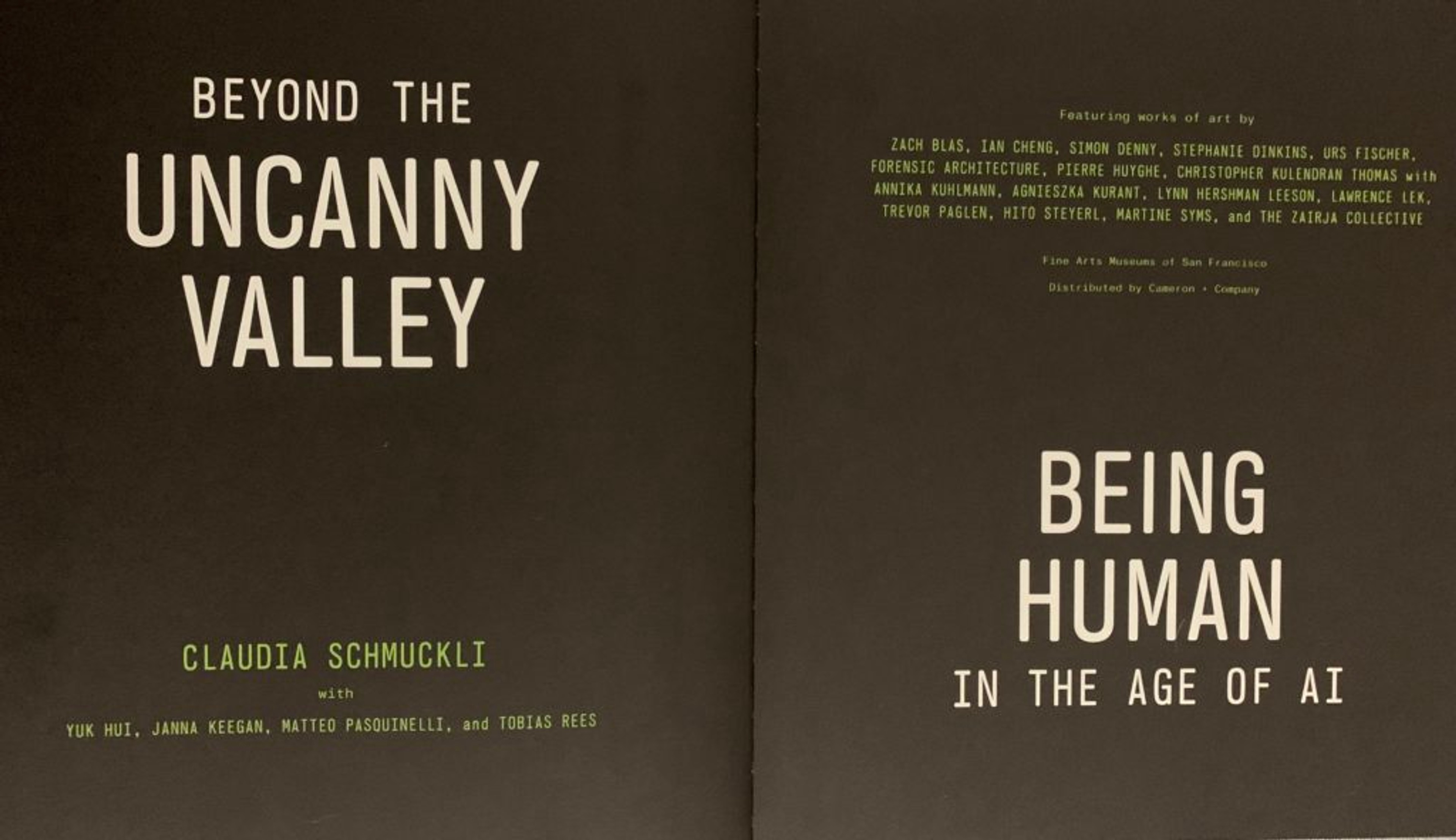 Due to Covid-19, the de Young Museum in San Francisco has extended the exhibition Uncanny Valley, conceptually borne from the ToftH AI and the Human working group, until June 26, 2021. Beyond the Uncanny Valley: Being Human in the Age of AI features five ToftH Artist Fellows: Ian Cheng; Stephanie Dinkins; Pierre Huyghe; Agnieszka Kurant and Martine Syms, and its catalogue credits ToftH Researchers Jake Browning and Philipp Schmitt with the development of an AI timeline and includes essays from ToftH Senior Researcher Yuk Hui and ToftH Director Tobias Rees.